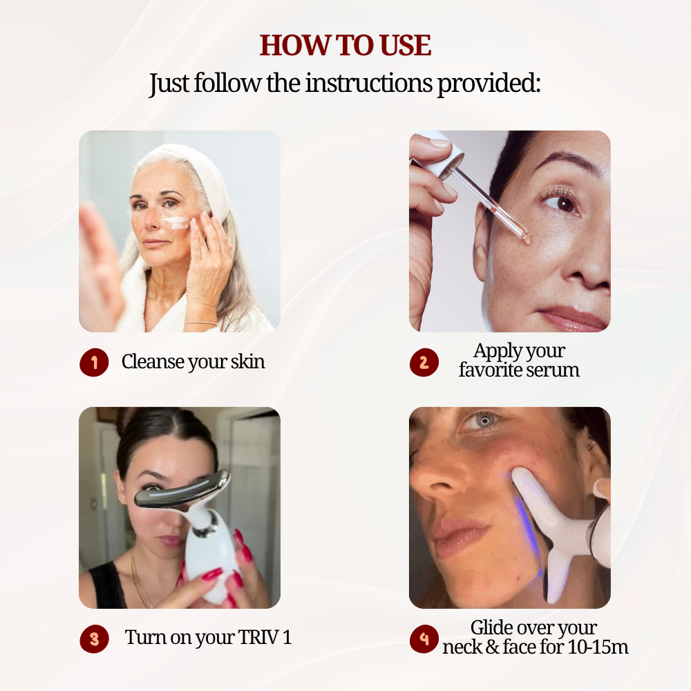 TRIV1 combines three advanced technologies—Red Light Therapy, EMS Microcurrent, and Sonic Vibration. Together, they help lift and firm your skin, reduce puffiness, and boost circulation. Just 5 minutes a day delivers visible results, all without pain or invasive procedures.
