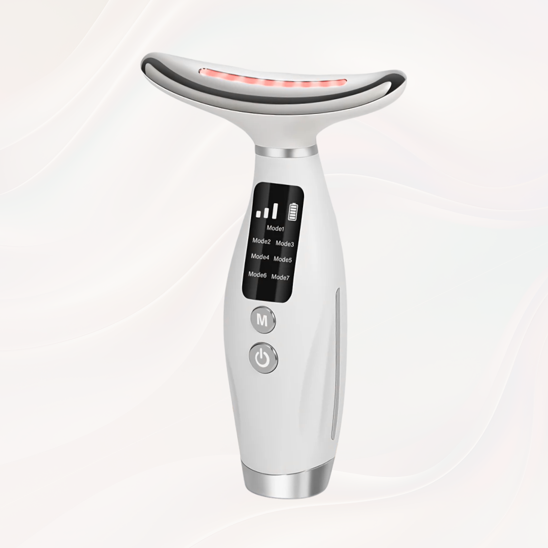 Sleek, curved design hugs both neck and face contours. Compact and travel-friendly, with a soft-touch surface that’s easy to clean and gentle on skin.